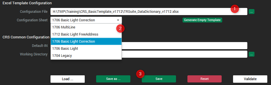Important: Before the import you need to configure the template in the CRS configuration tab and save the configuration: